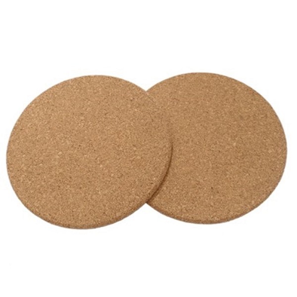 Ronde panonderzetter kurk set van 2 stuks. De onderzetters hebben een diameter van ongeveer 18 cm.